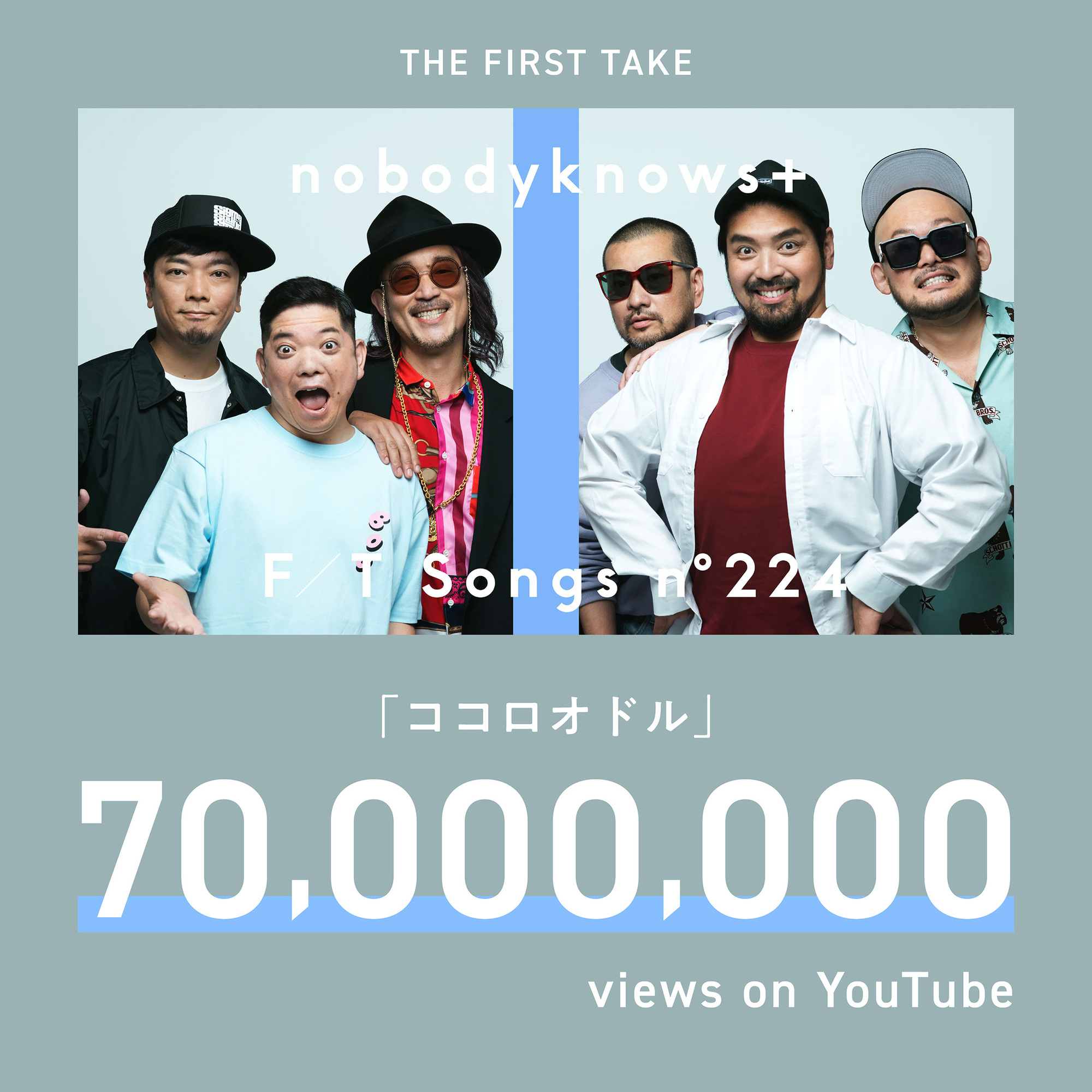 Youtubeチャンネル『THE FIRST TAKE』でnobodyknows+の"ココロオドル"が7,000万回再生を突破しました!