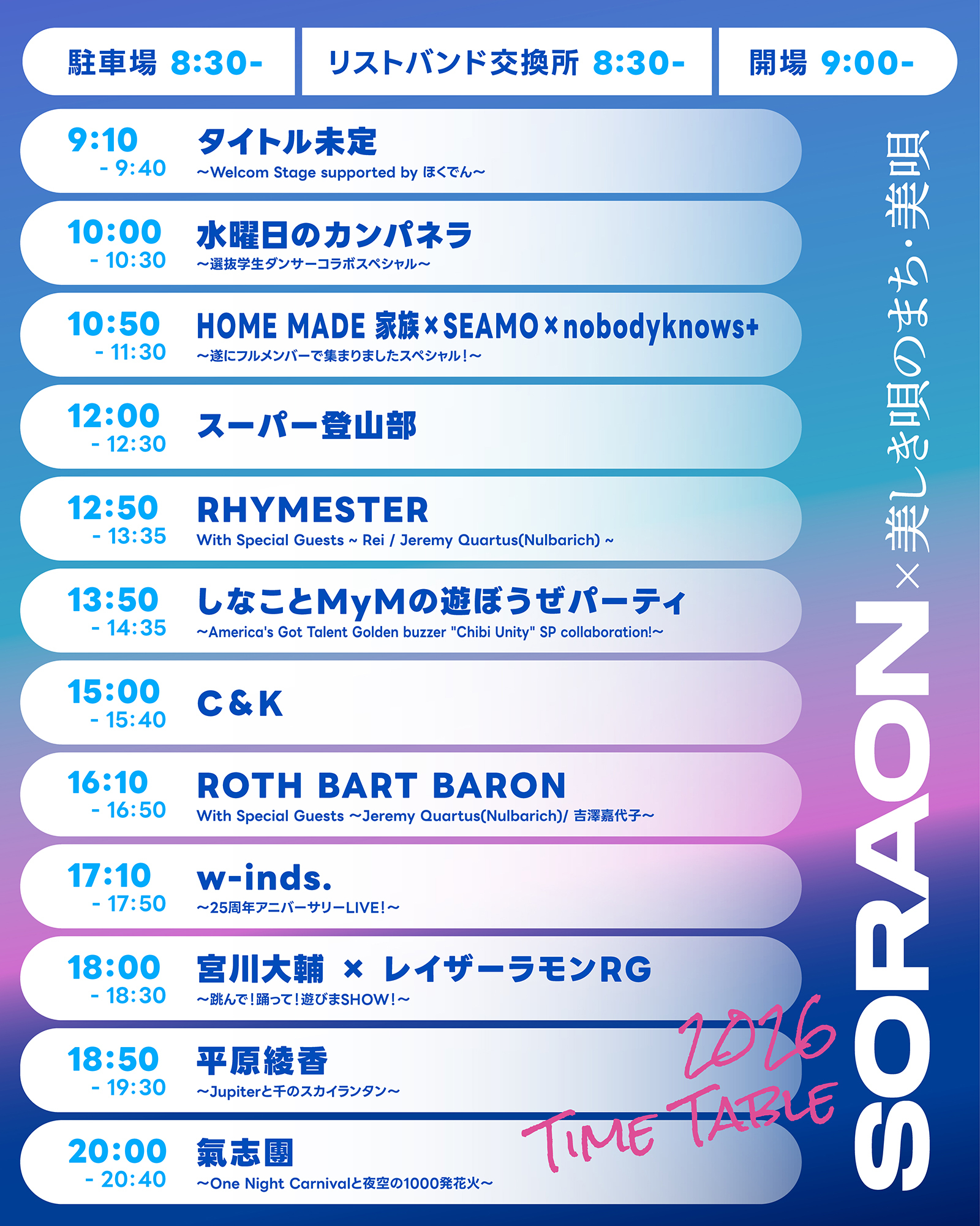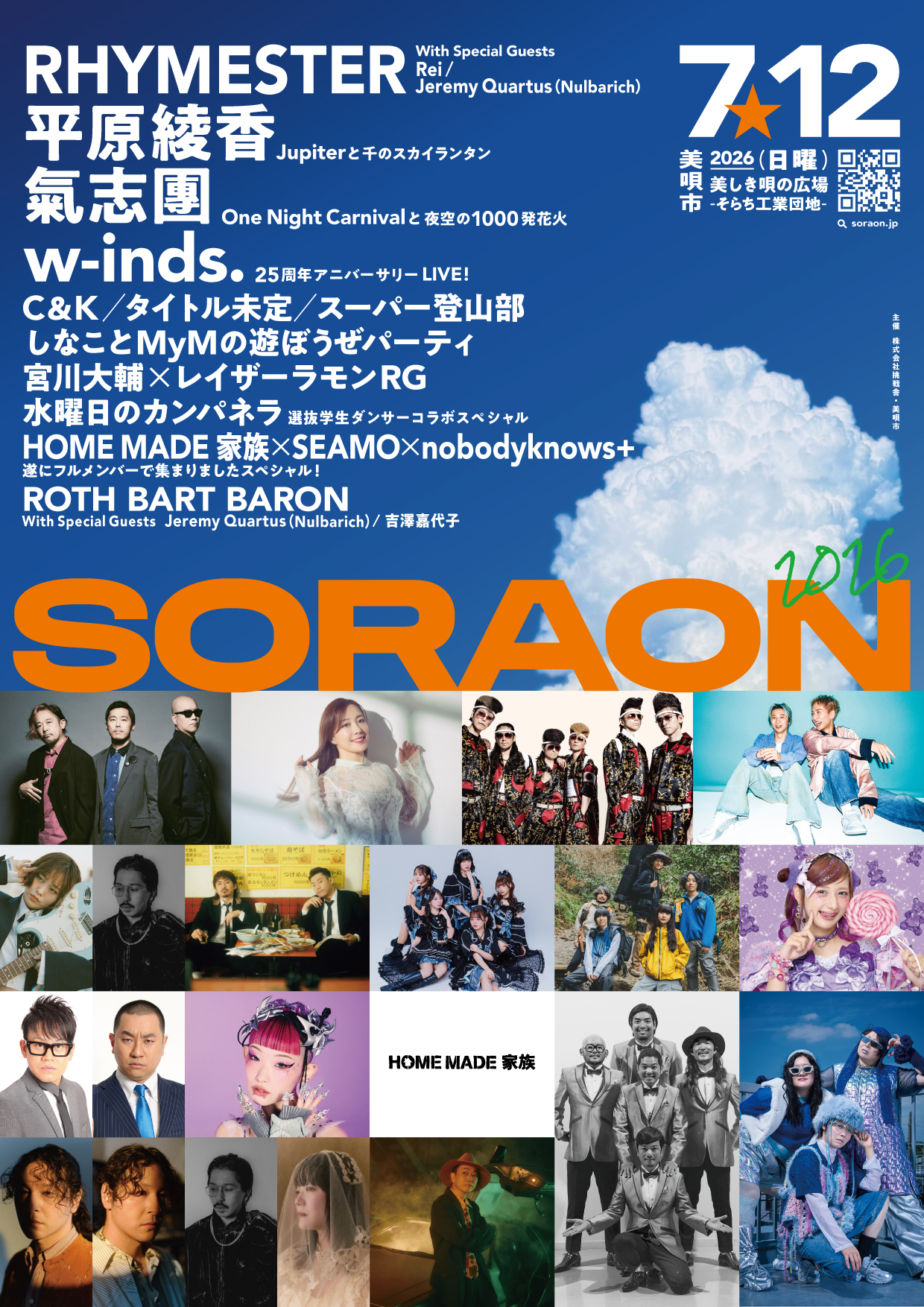 2026年7月12日(日)に北海道・美唄市で開催される『SORAON 2026』にnobodyknows+の出演が決定しました!